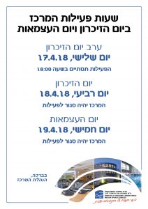 לעדכון שעות פעילות המרכז ביום הזיכרון ויום העצמאות לחץ כאן